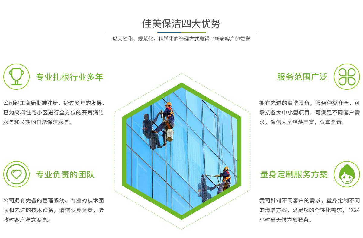 馬鞍山市佳美保潔服務(wù)有限公司是一家經(jīng)工商部門(mén)批準(zhǔn),具有法人資格專業(yè)清洗,馬鞍山保潔服務(wù)的公司,自創(chuàng)辦以來(lái),一直致力于企業(yè),家庭,賓館,學(xué)校,別墅,酒店,商廈,公共設(shè)施等場(chǎng)所提供科學(xué)的日常保潔和清潔保護(hù)的服務(wù)公司,有著豐富的管理服務(wù)和保潔經(jīng)驗(yàn)...